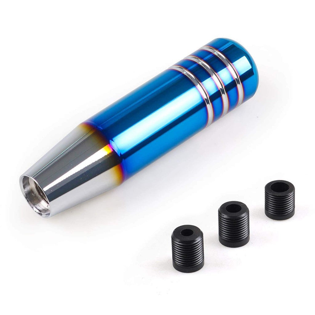 Extended gear shift knob crafted in JDM style. The vibrant chrome blue color with racing-inspired elements will captivate any car owner, especially fans of the Japanese Domestic Market (JDM) and tuning.