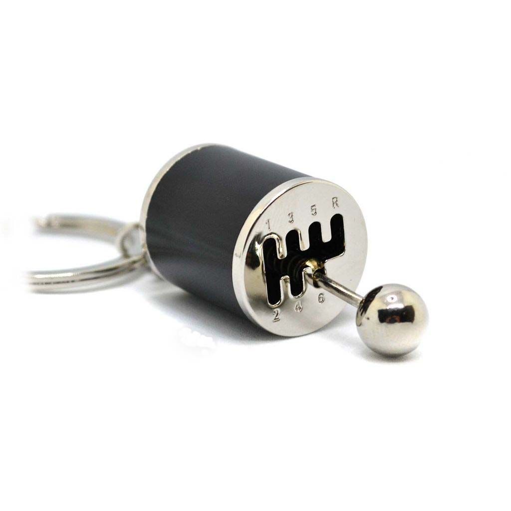The lever in the keychain is spring-loaded, producing a click when shifting gears, and a little effort is required to move the lever. The keychain has a total of 6 forward gears and one reverse. An excellent, original accessory – it will appeal to every manual transmission car owner.