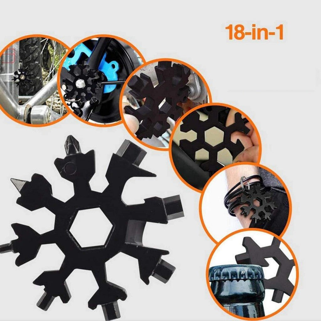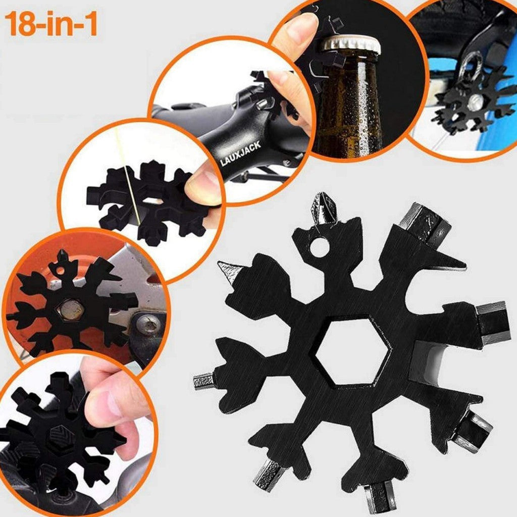 MULTITOOL KEYCHAIN "SNOWFLAKE" 18 IN 1 - BLACK