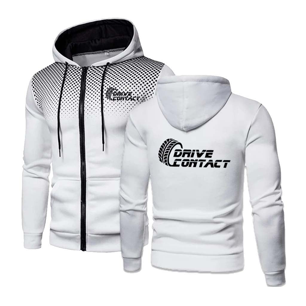 Gear up for casual comfort and show your love for motorsport with DriveContact's Men's Printed Hoodie in a bold White & Black color scheme!