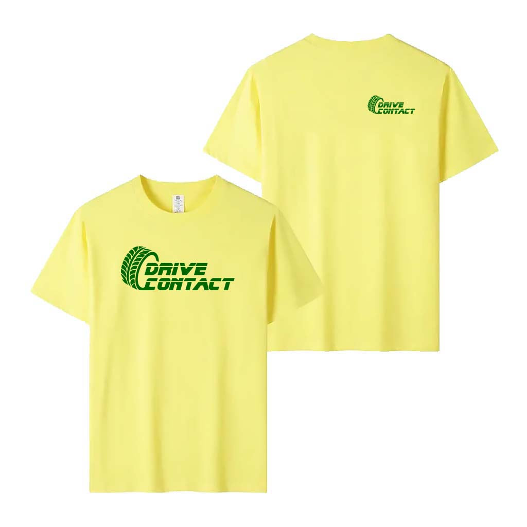 Channel your love for racing with a classic tee! DriveContact's yellow & green unisex logo tee features 100% cotton, relaxed fit & a bold logo. Perfect for spring/summer.